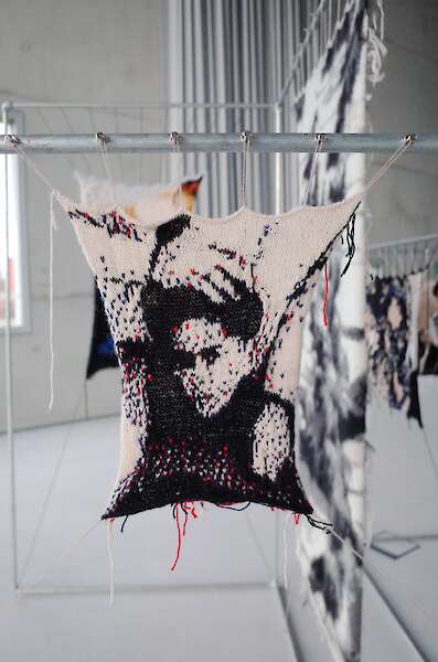 In meiner aktuellsten Arbeit stricke ich gerade Bildausschnitte aus meinen Familienalben.
